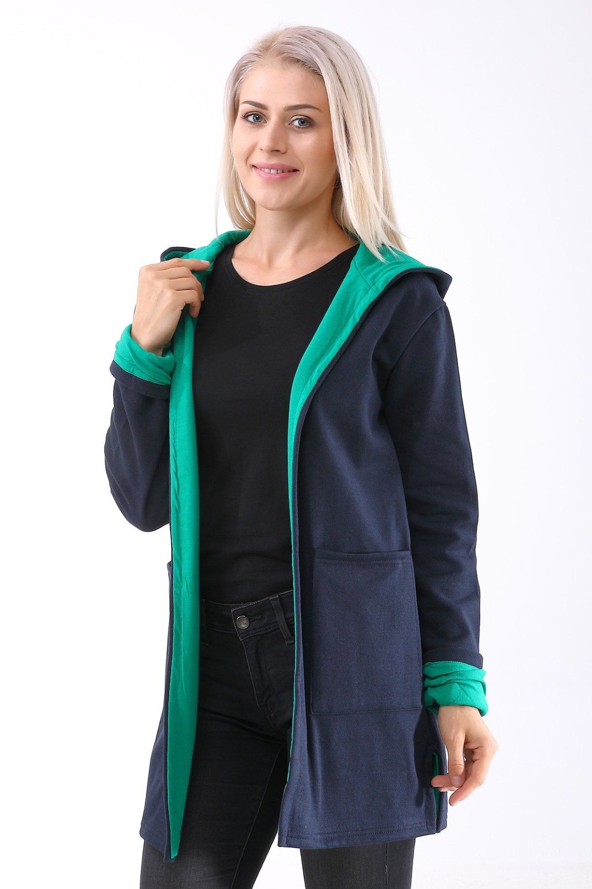 • Günlük Renkli Kapüşonlu Spor Kadın Ceket