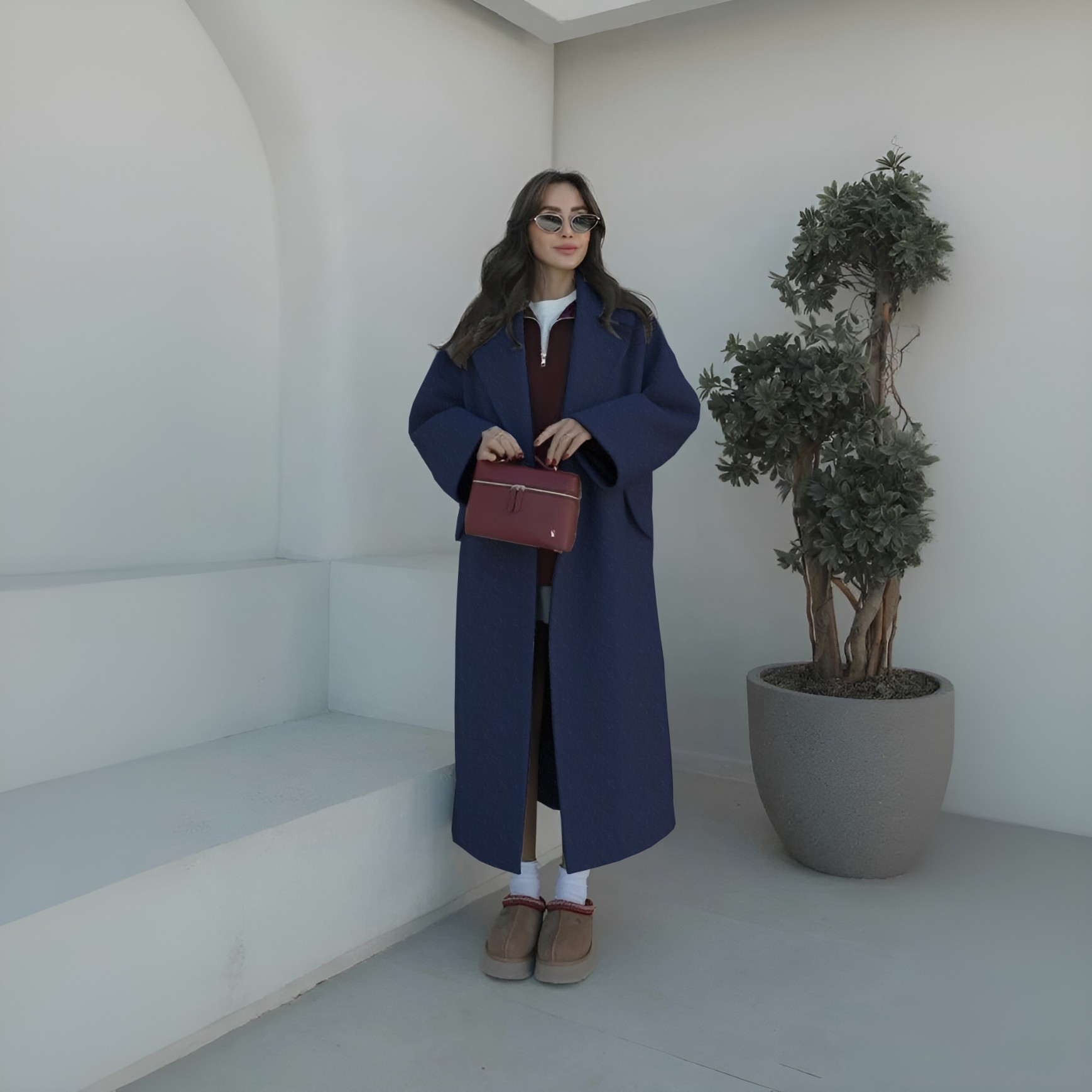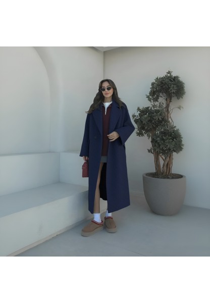 • Kışlık Astarlı Sırtı Detaylı Kadın Kaşmir Kaban